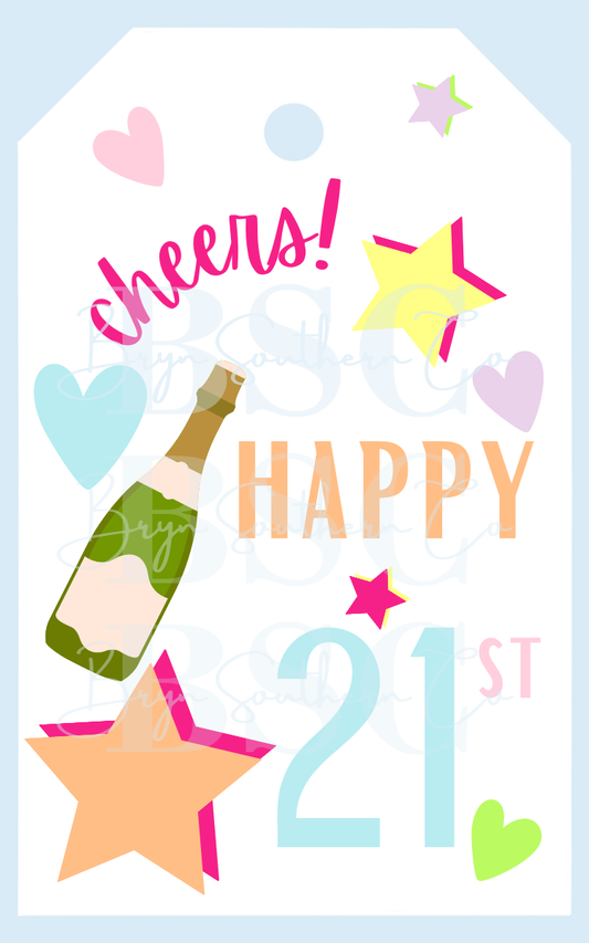 Cheers! Happy 21st Gift Tag